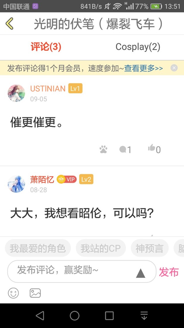闲谭梦落花(作者)评论+cosplay100加更。