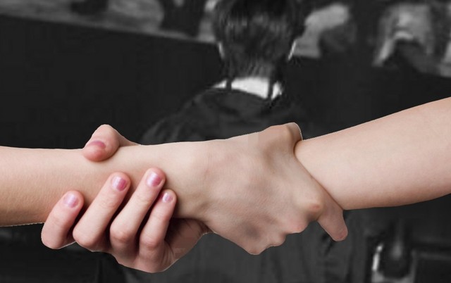 两人正僵持着的,突然王一宝神色微变,拉起肖乐的手就快速往广播室旁边的楼梯跑去。
