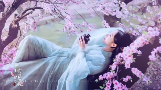随后飞身而起,从桃花树上摘下一把桃花攥在手心,飞至牵机阵处洒下,桃花瓣纷纷扬扬落下,少女以花瓣为点,踩在牵机石上,在完全没有触动机关的前提下闯过了牵机阵。