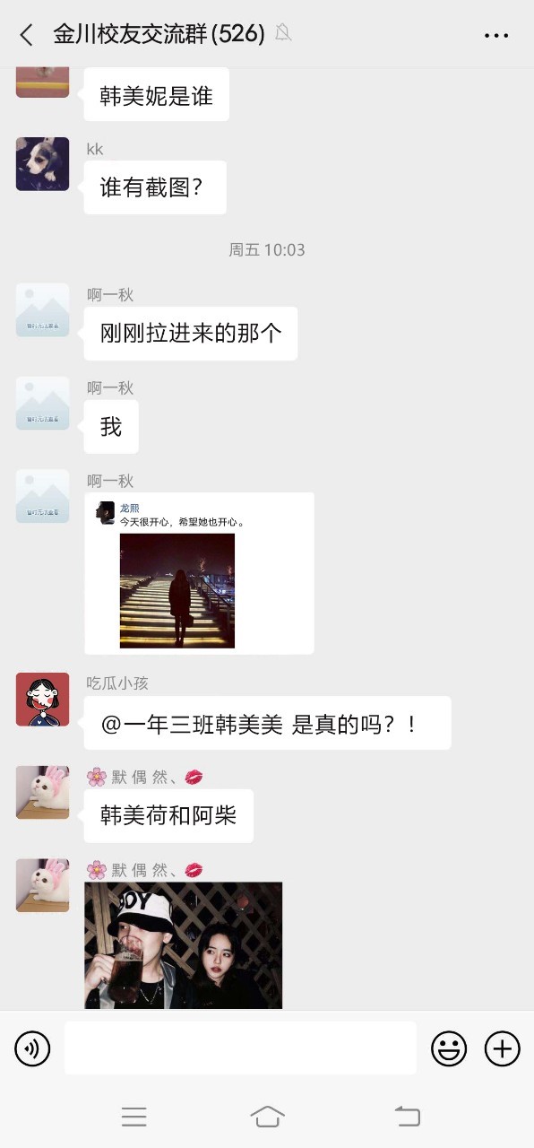 我产生了不好的预感,此时我的手机突然响个不停,我掏出来一看,我刚刚被拉进一个微信群,名字显示是学校的校友群,里面铺天盖地的都在艾特我,消息快得我一时没看懂究竟发生了什么。