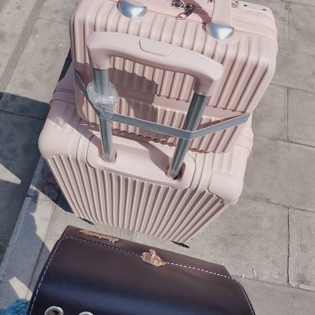 拖着行李箱静静的等待公交车