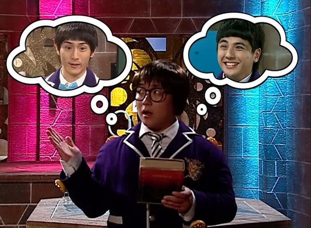 哈利波波和桂恭仔拿着欧趴的书向大家解释着