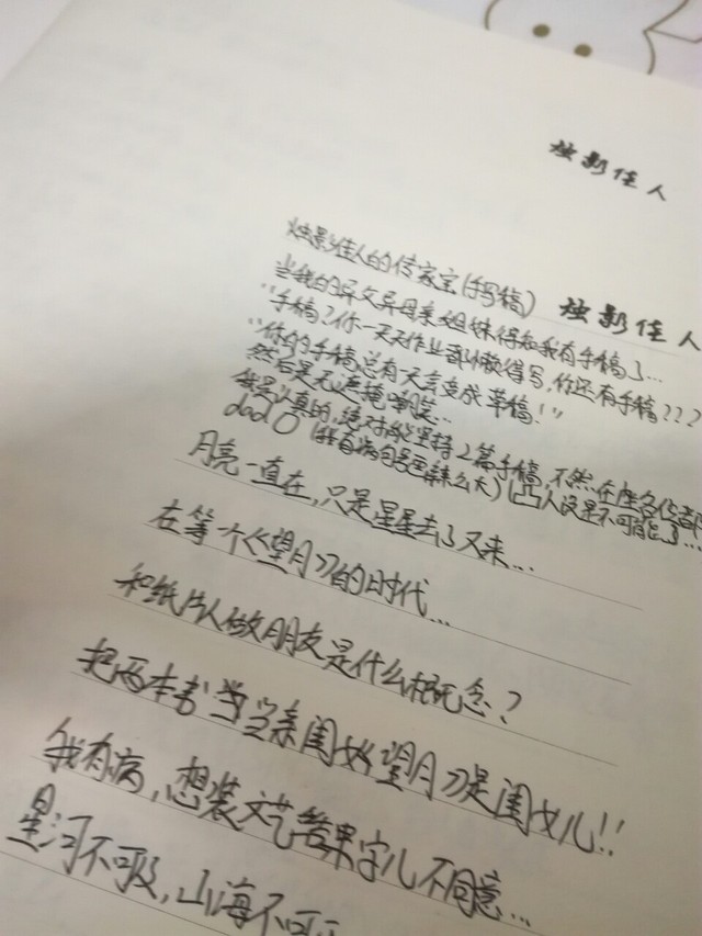烛影佳人我可能有病,我开始用手写稿了