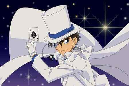 拿着扑克牌的怪盗基德真帅!以星空为背景。那斗篷是怎么弄上去的?简直太好看啦!