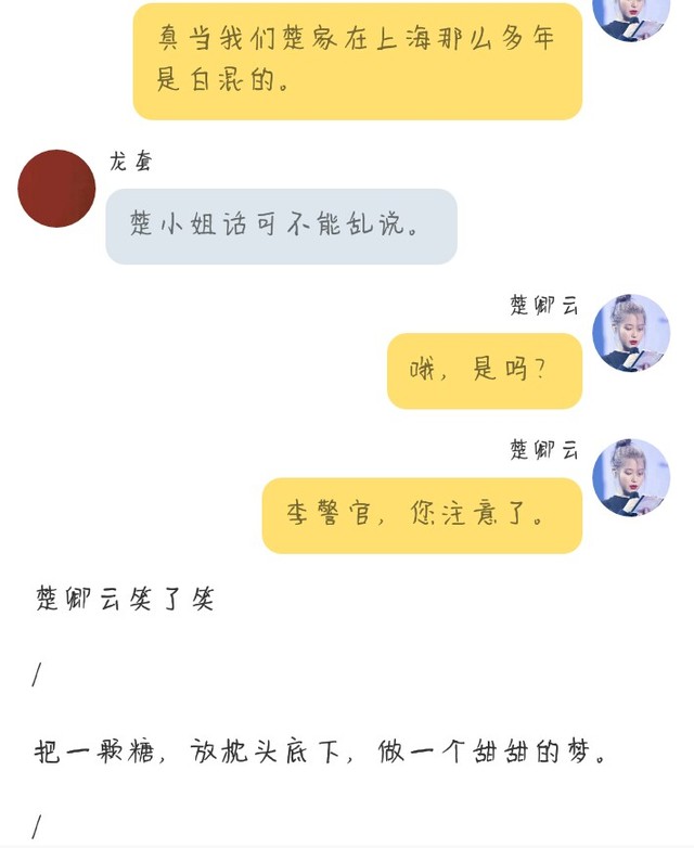 楚卿云李警官,我希望您公私分明。