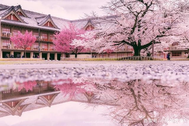 周围种满了樱花,樱花上挂满了风铃