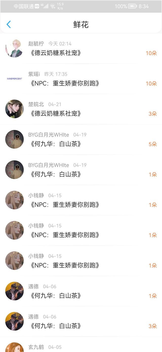沙雕作者感谢紫瑶i送出的十朵花花