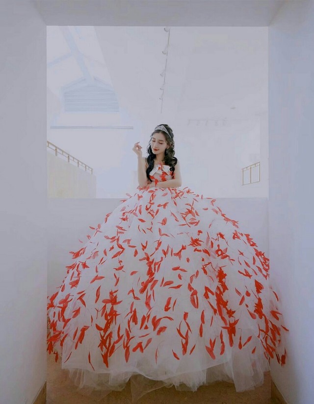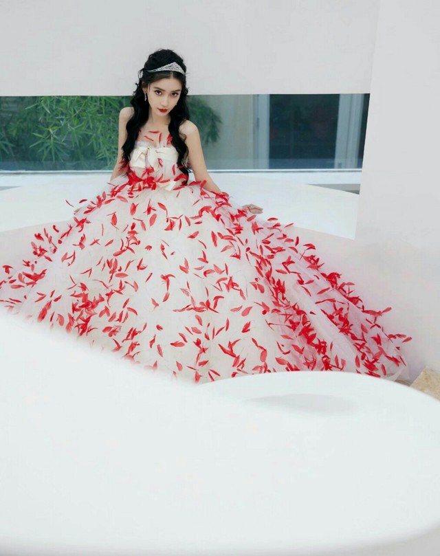 她化着精致的妆,使得本来就好看的脸在镜头下更加美丽耀眼。她戴着顶王冠,此刻的她像极了那句最近流行的话,出逃的公主。