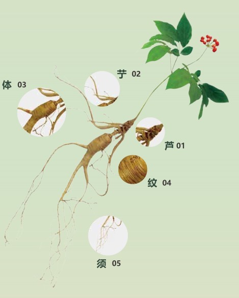 “野山参,35年份生,参体灵秀、五形俱佳。体态精悍强健,质实玲珑,须长弯绕龙蛇飞舞,珍珠点突出,芦头见长,二马牙圆膀圆芦多。大补元气,回阳救逆之功效。”