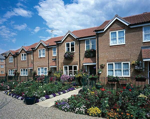 蓝湛湛的天空上染上几朵白花花的云朵☁,一排排又一排排的独栋小房子并列在一起,五彩斑斓的树木花草装饰着房子,显得格外温馨.