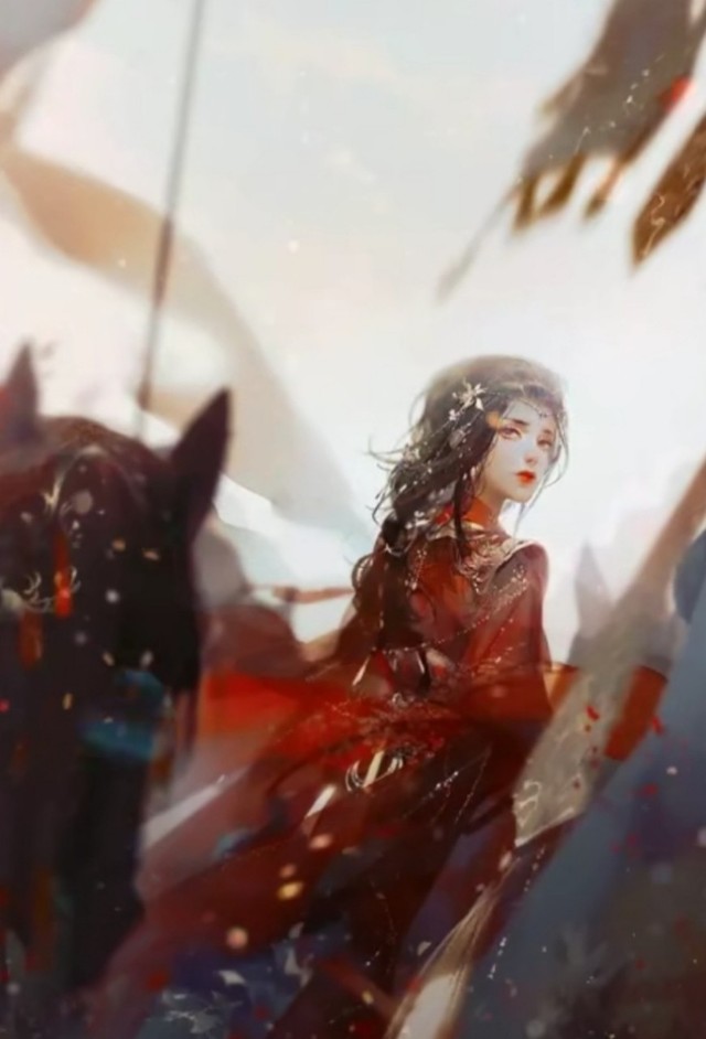 凤冠霞帔,配上盖头,同是红衣,但盖不住,遮不住的是那如细丝搬缠绕在心头的悲伤。
