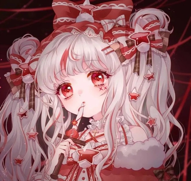红色的眼睛,白色的头发,捆着两个小辫子