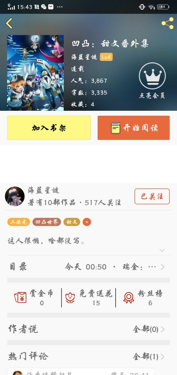 海蓝星谜.作者粉福的事是讲的差不多了啊,就是那个几个加了群的能不能活跃一点?