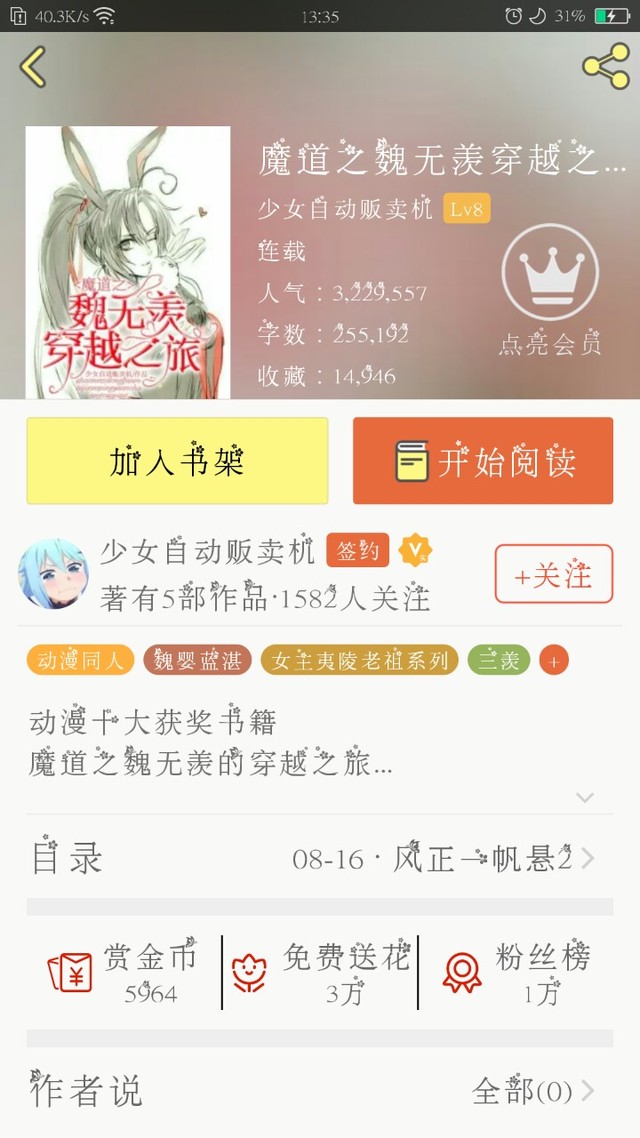 作者适合看穿越文和魏无羡的读者们。