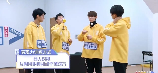 黄新淳我们有一种方式就是…我觉得我们两两一组,然后眼睛看着眼睛,来训练我们的眼神和表情,还有动作