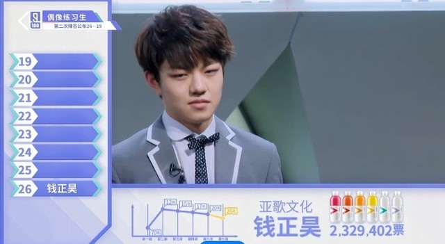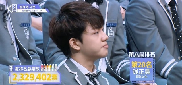 张艺兴&LAY他总共获得来自全民制作人投出的二百三十二万九千四百零二票。他是来自亚歌文化的钱正昊练习生