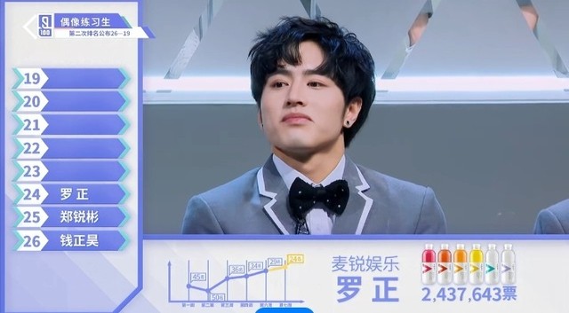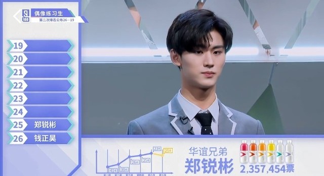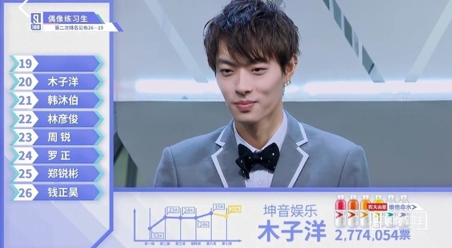 张艺兴&LAY接下来我们来看一下第二十五名的练习生。他和正昊一样,也是来自Vocal小半组的练习生