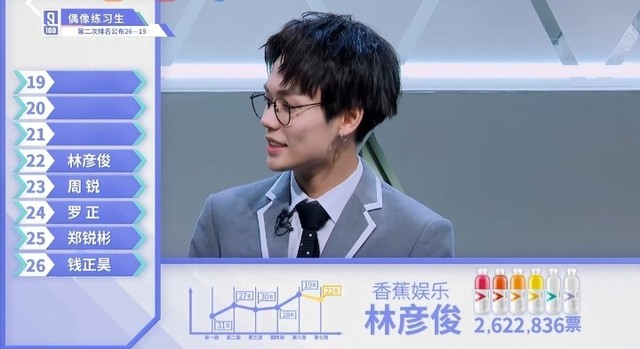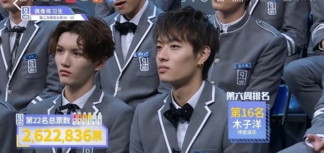 张艺兴&LAY接下来看一下第二十二名的练习生。他总共获得来自全民制作人的二百六十二万二千八百三十六票