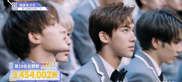 张艺兴&LAY接下来我们来公布第十九名的练习生。他总共获得来自全民制作人的三百四十五万四千零二票