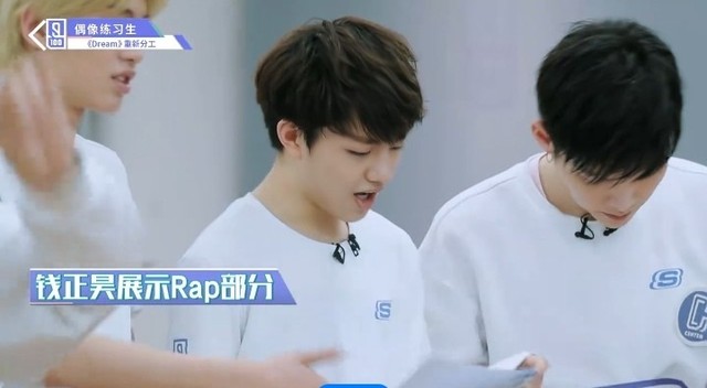 朱正廷我来总结一下,就是觉得…如果你去唱歌的话会更好一点,因为我们现在缺一个F part。然后F part有几次c位的中间