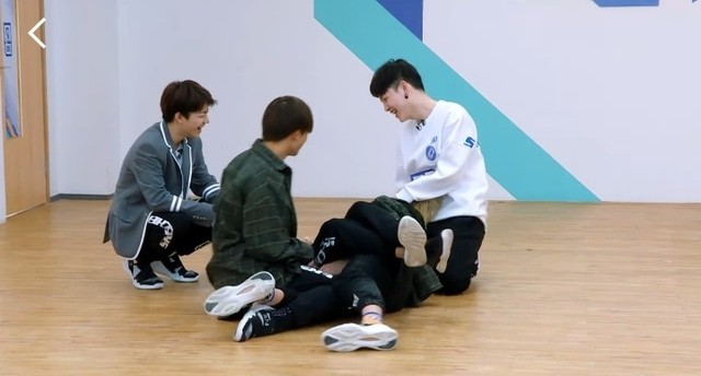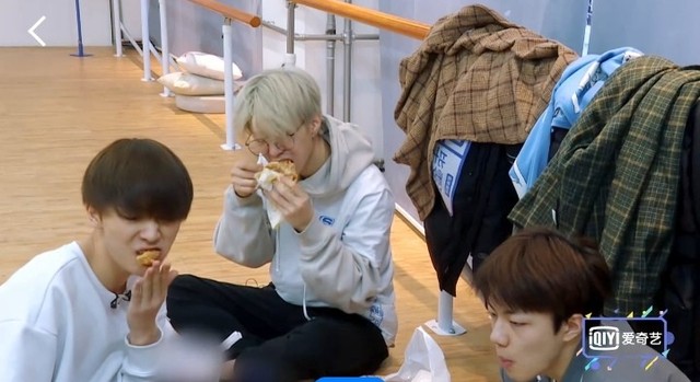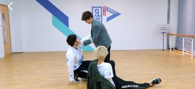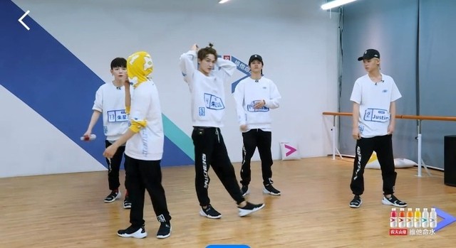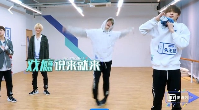 朱正廷现在昊昊先练一下吧,要不然他一个人练一会。你是太…其实跟着我们就学得太快了是吧