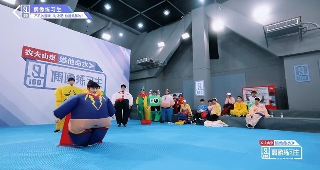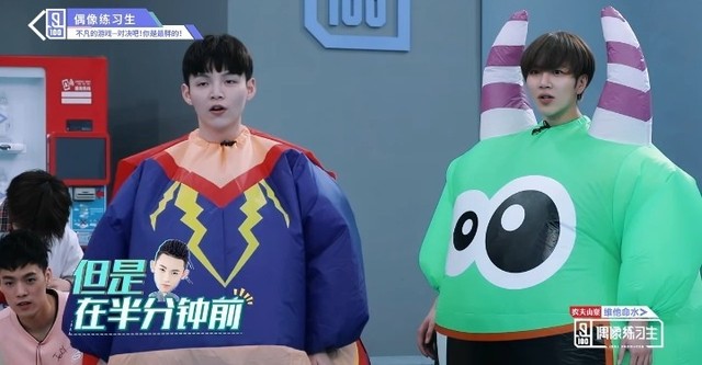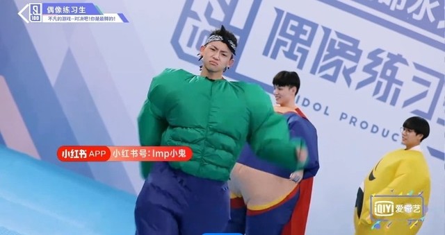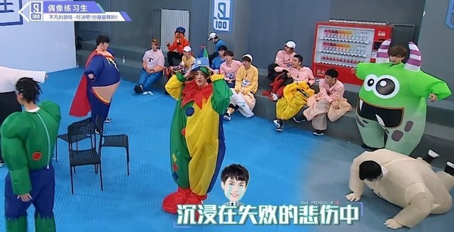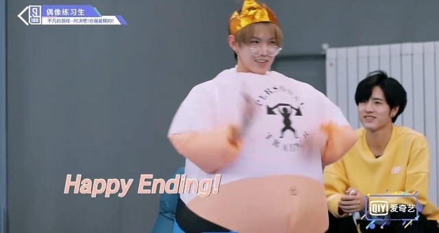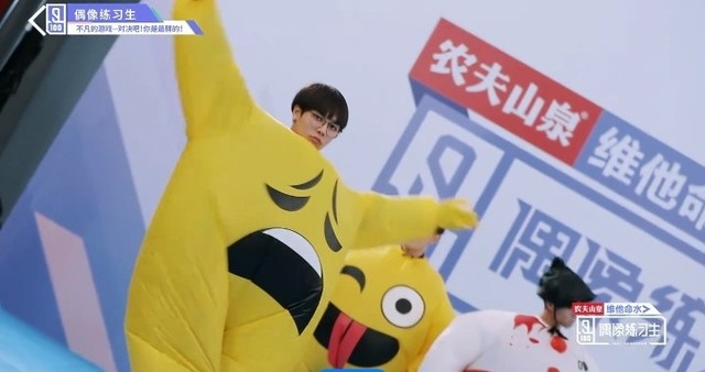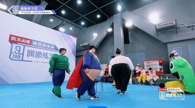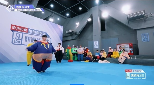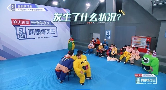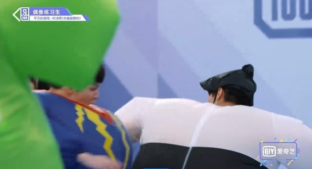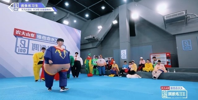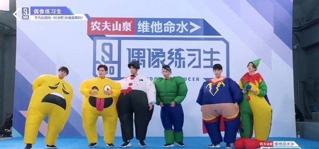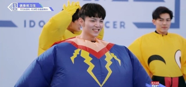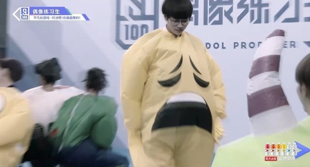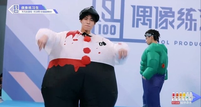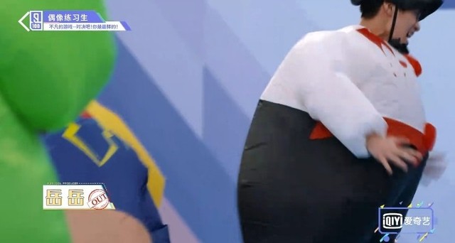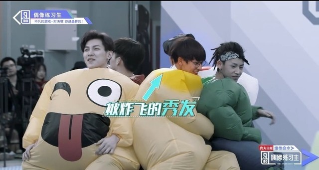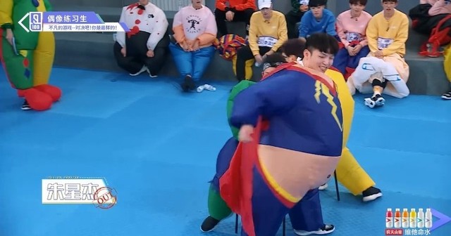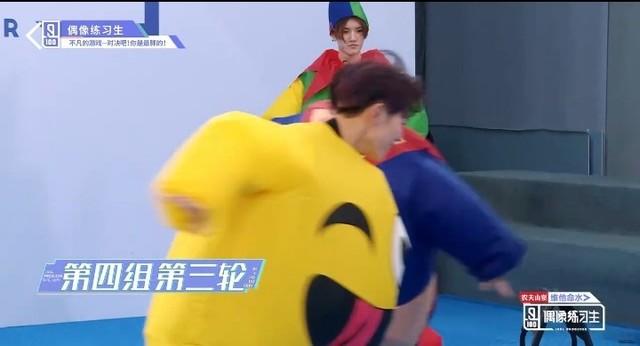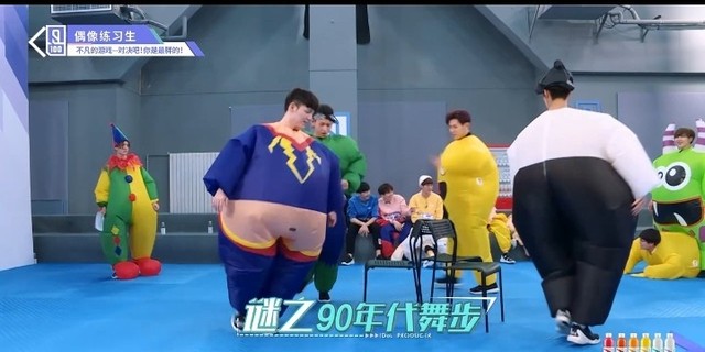 音乐响起,第四组穿着胖胖服的练习生们开始围着椅子转圈