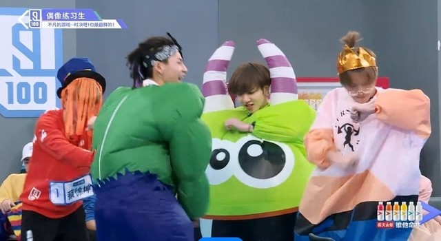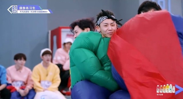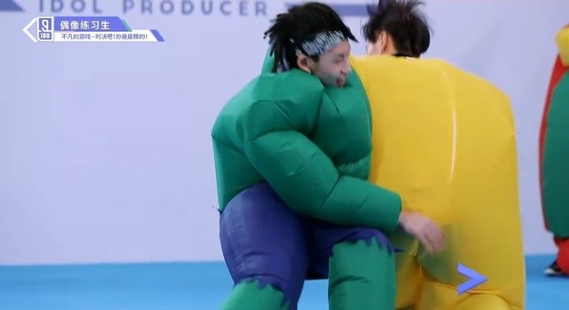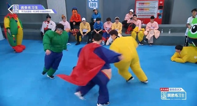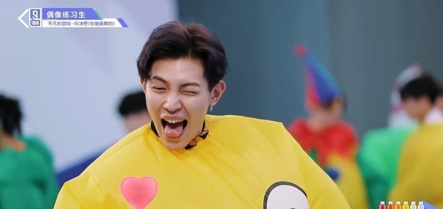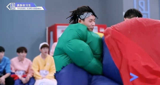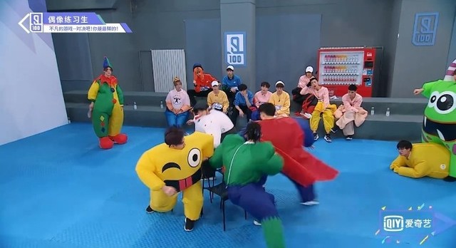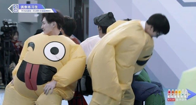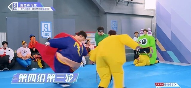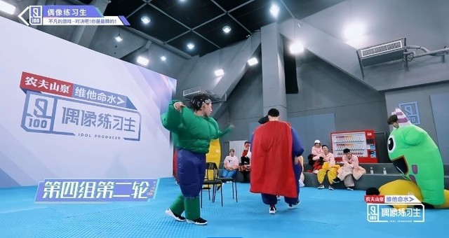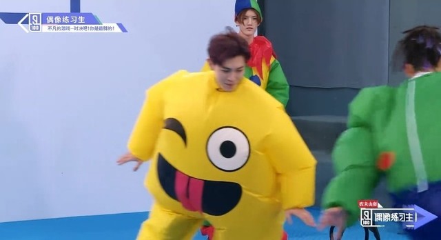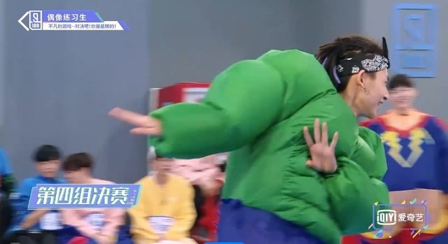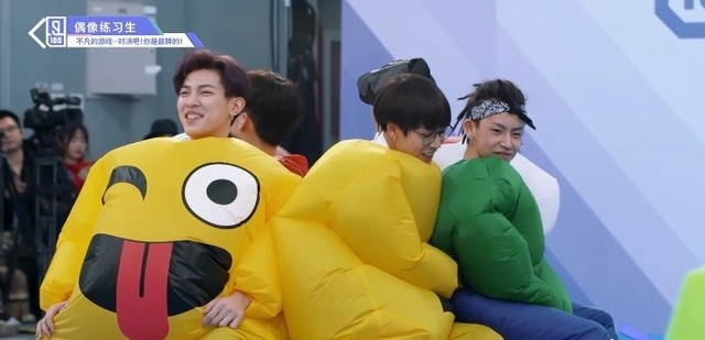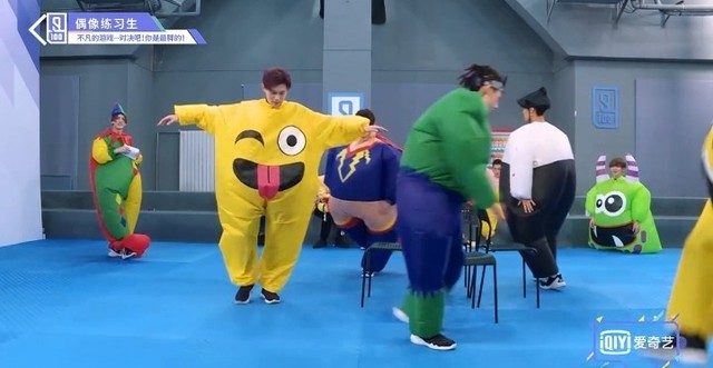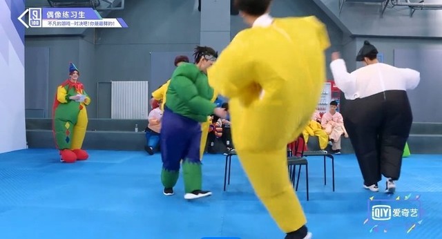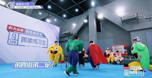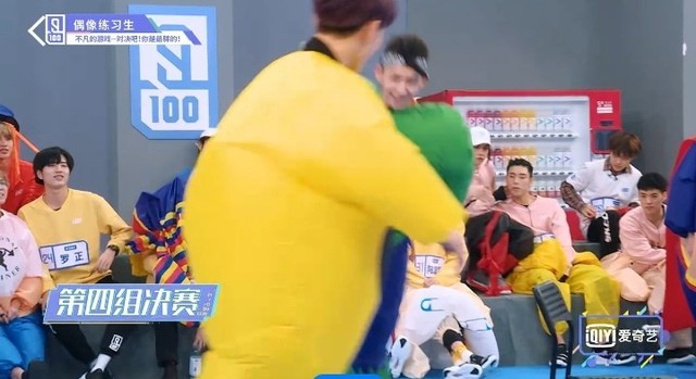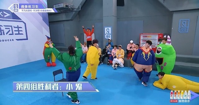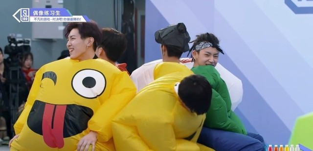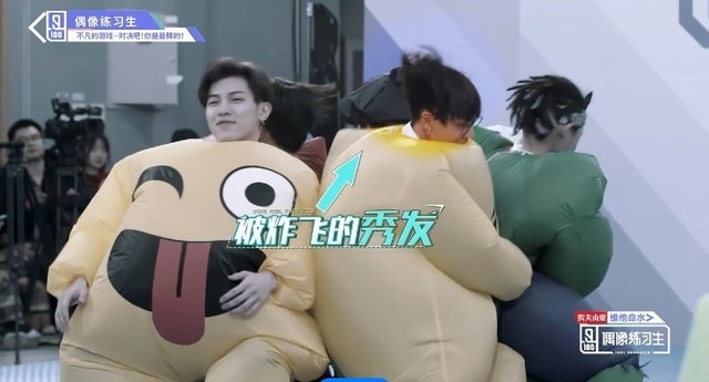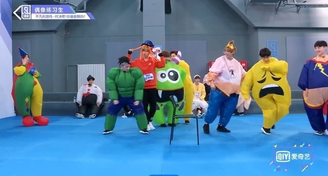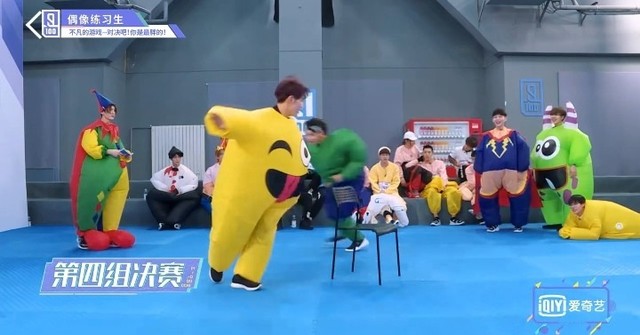 音乐再次响起,穿着胖胖服的第四组的练习生们开始了新的一轮抢椅子游戏