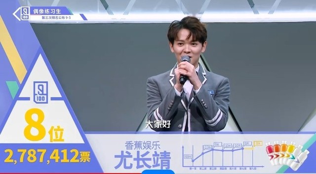 尤长靖大家好,我叫尤长靖,来自香蕉娱乐。刚有听到之前的在上面的朋友就是说…刚来到这个场地的时候就跟大家都是很不熟的一个状态。就想了一些事情,然后就想到其实一开始来参加这个节目的时候其实没有想到,当然会有想要进到总决赛的那个心情。那时候可能就觉得还是离自己比较远的,然后现在一步一步走到现在,可以进到前9,第8名的位置,就觉得…就很想说,自己做到了。然后想跟所有选择支持我的全民制作人们你们辛苦了【鞠躬】