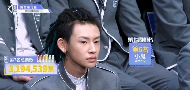 张艺兴&LAY接下来,公布第7名的练习生。他共获得来自全民制作人投出的三百一十九万四千五百三十九票