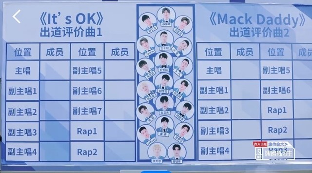 张艺兴&LAY根据二十位练习生第三次排名公布的成绩进行选择。你们在自己想选歌曲的位置上贴上自己的头像。排名低的练习生优先选择