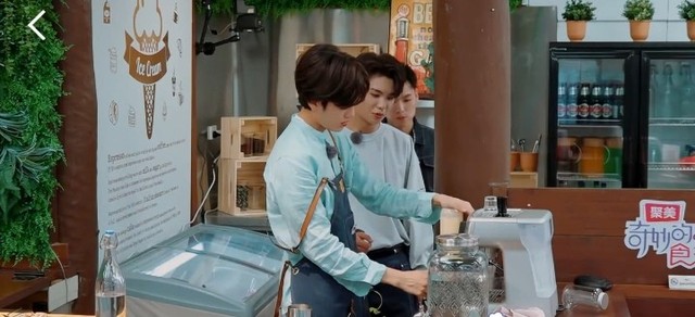 黄明昊&Justin开始准备的话,就我们四个就刚刚说好,你们三个去厨房