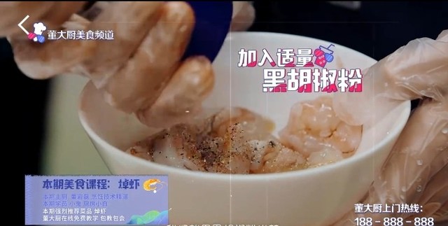 董岩磊抓一点,然后抹在那虾上就行,均匀的抹上就行了