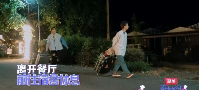 吃完饭后,七位合伙人拉着自己的行李箱前往宿舍