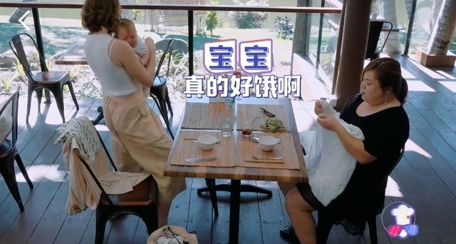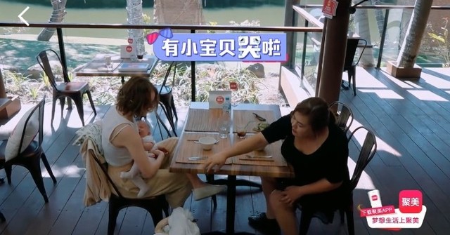 由于饭菜还没有上来,小婴儿饥饿地“呜呜呜”地哭了出来