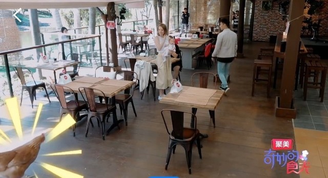 女客人鸡也饿了,要吃饭了