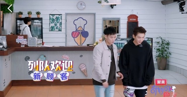 黄明昊&Justin【走到毕雯珺那里】两个橙汁,一个热的拿铁