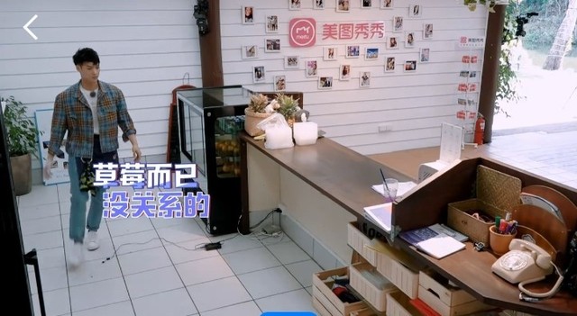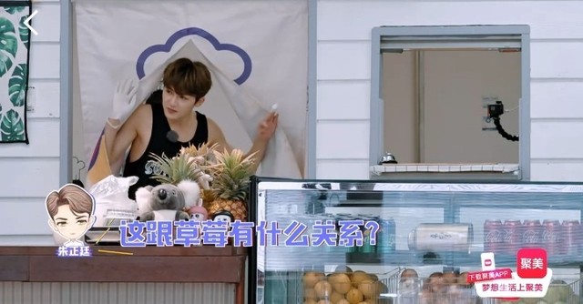 朱正廷吃着草莓向刚来的客人走去