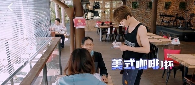 蔡徐坤走到毕雯珺那里,开始做拿铁