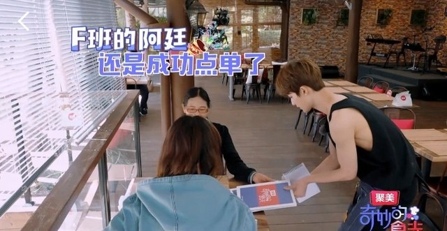 客人边说边在菜单那里指着,朱正廷认真的记下来