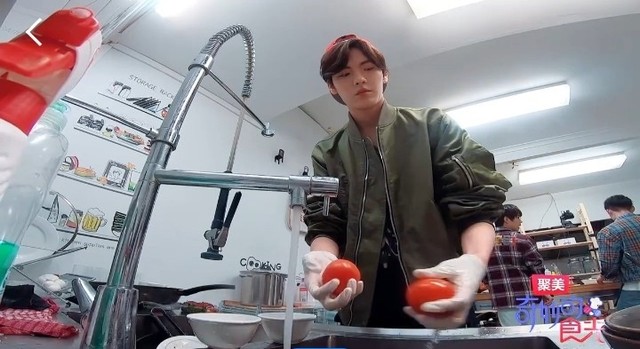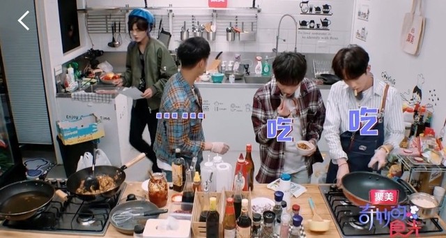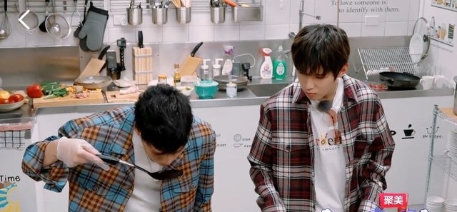 毕雯珺和李希侃对了对外卖单又来到后厨