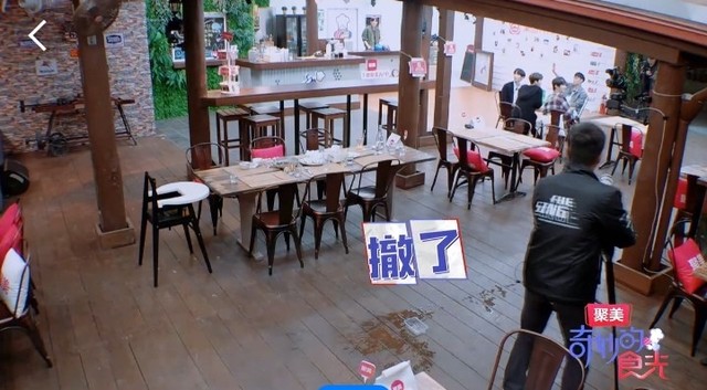 客人们走后,朱正廷回到餐厅