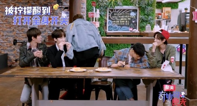 毕雯珺,张梓馨和蔡徐坤(根本没吃)是阳光明媚的,而另外的四人则是乌云密布