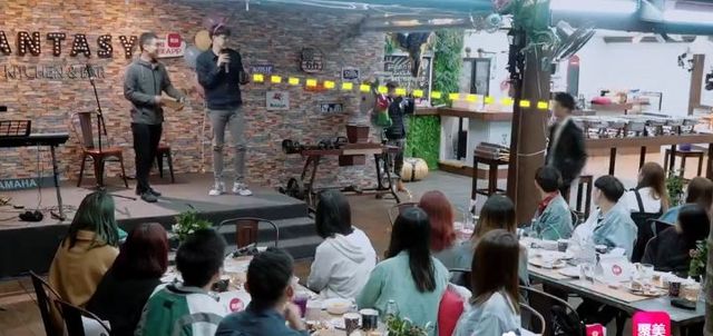 Ena(客人)【走上舞台,拿起话筒】然后就是…因为我有两个很好的朋友,她们两个就是单身比较久