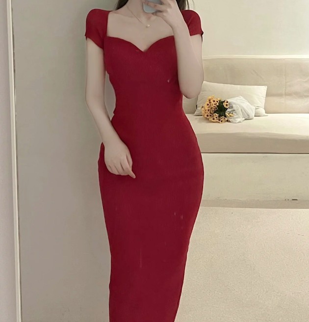 姜佩辞特意穿了一条和平时的风格相差很多的红色修身的裙子。