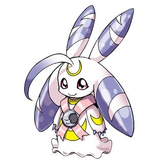 与月亮观察数据结合而生,兔子模样的哺乳类型数码兽。能用大大的耳朵听到远方的声音,个性怯懦,容易接近易感到寂寞的人。必杀技,咋一看很可爱,用注入了闇之力的爪子抓挠「卢娜爪(LunarClaw)」。在额头的触角集中力量,向敌人放出绮丽水球的「泪之玉(TearShoot)」。及让耳朵一圈一圈的旋转,引起肥皂的漩涡把敌人卷入的「垂耳兔波动(Lop-earRipple)」。