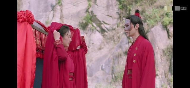 然后门就开了,出来一群女子,手中还端着红色的嫁衣
