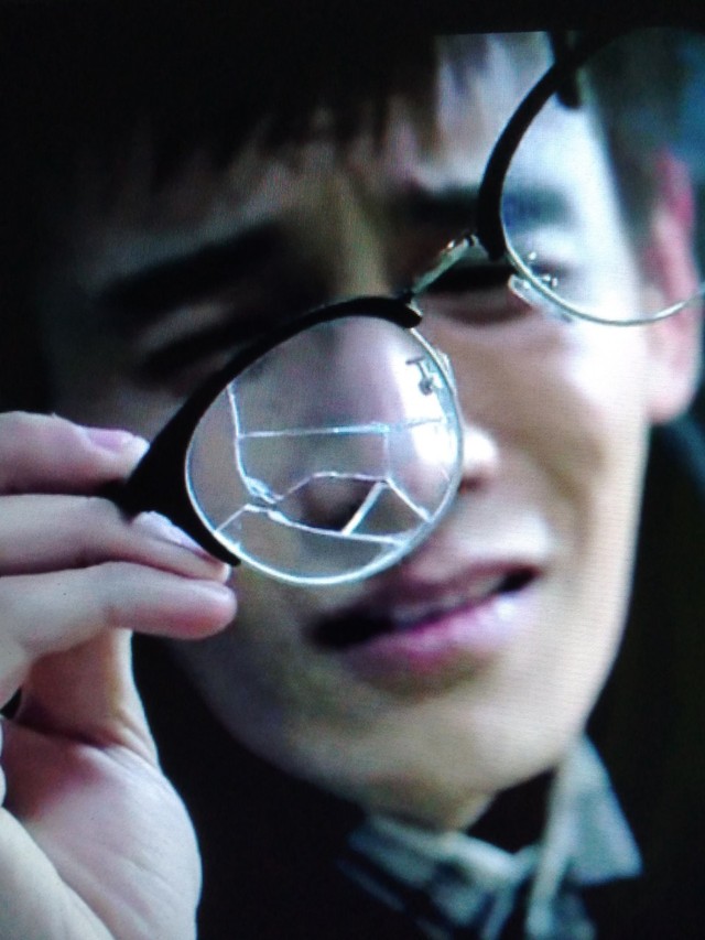 在上去的途中,尹剑不小心被台阶绊倒了,眼镜掉在了地上。