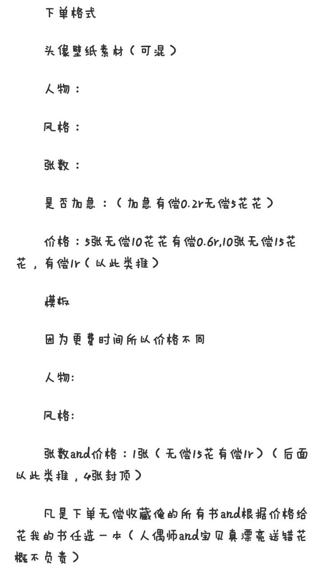 “下单格式”