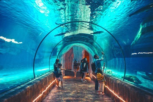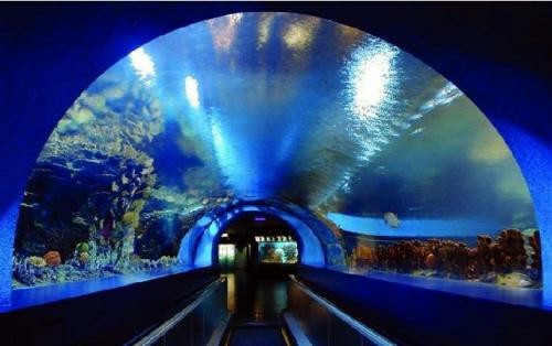 两个人进了海洋馆,一进去就是长廊,长廊两边都是 绚丽斑斓、神奇多样的海底动物。