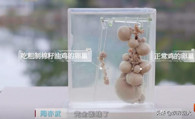 刘良“他们用鸡来做实验,吃了含面芬超标的食物,鸡的生殖器官产生的变化,从而得出棉芬对生育能力有减弱的能力!”